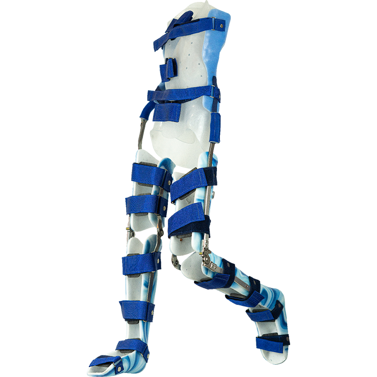 - speziell angepasste Orthesen für die unteren Extremitäten